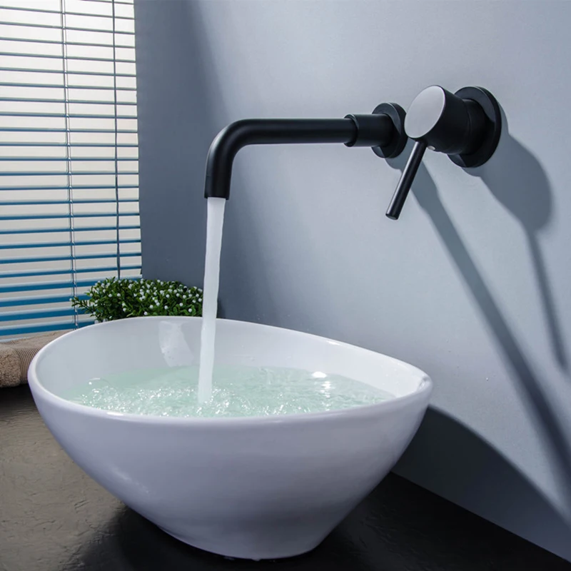 Modern Brass Wall Basin Mixer Tap Bathroom Kitchen Sink Faucet Swivel Spout Bath With Single Lever